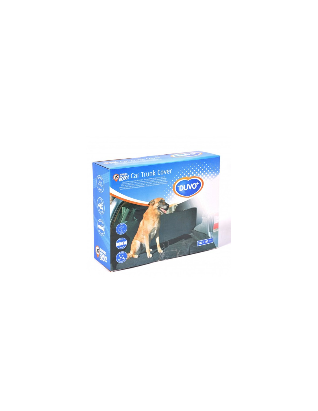 La funda para maletero DUVO mide 180 x 130 cm y está diseñada para proteger el maletero de tu coche de suciedad, pelos, arañazos y posibles daños durante el transporte de tus mascotas. Fabricada con materiales resistentes y duraderos, esta funda es fácil de instalar y limpiar, ideal para viajes con perros y otros animales.
