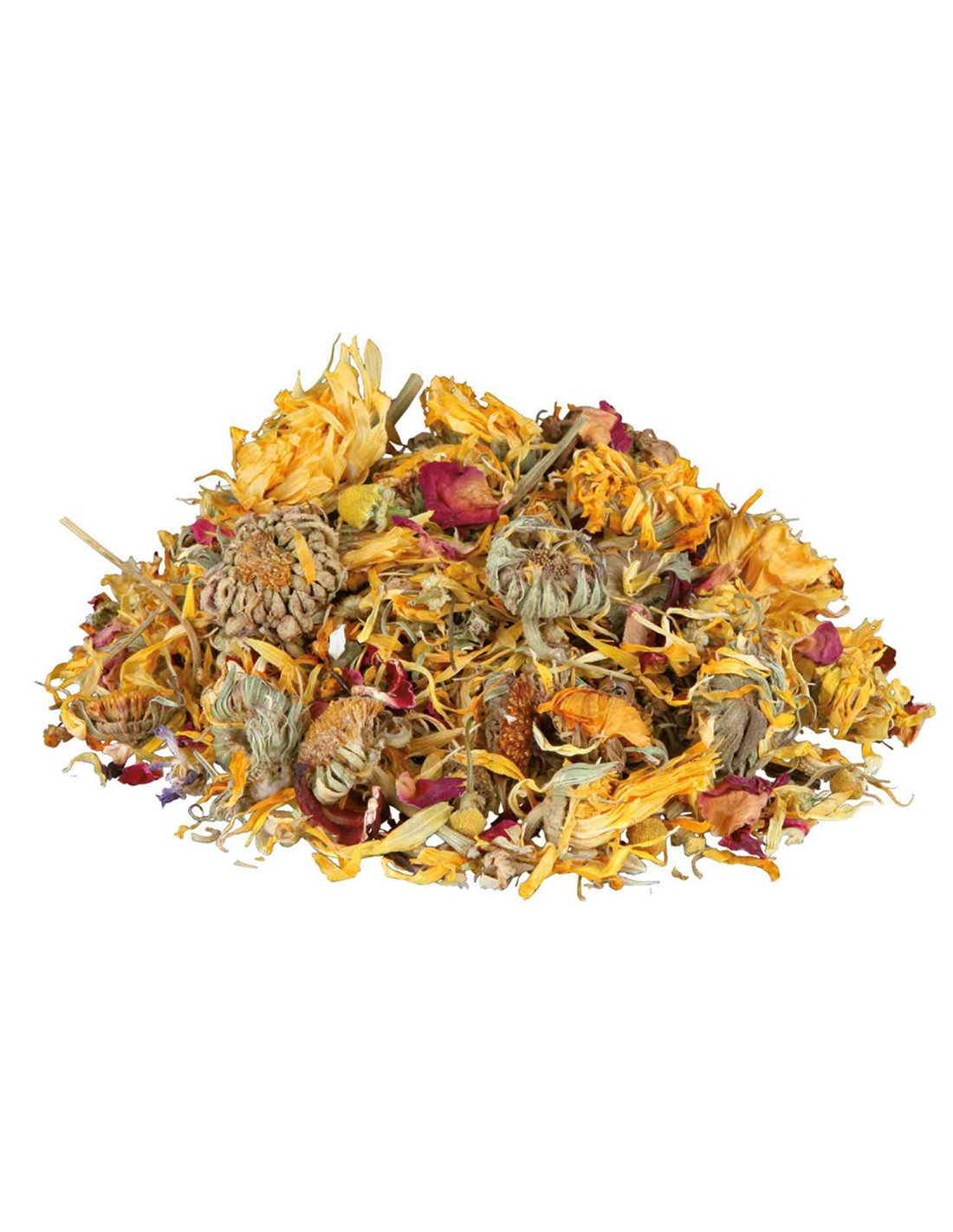 🌿 Compuesta por flores deshidratadas seleccionadas por su valor nutricional, esta mezcla es rica en fibras vegetales y fitonutrientes que: