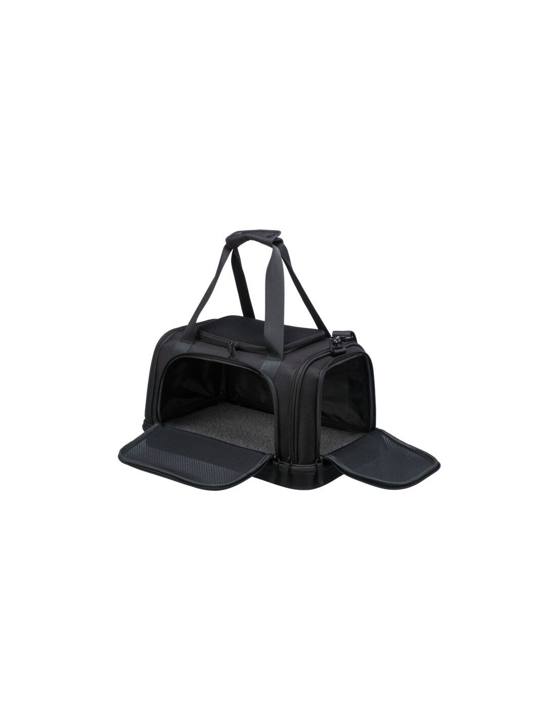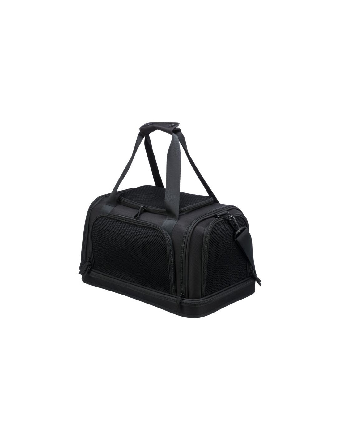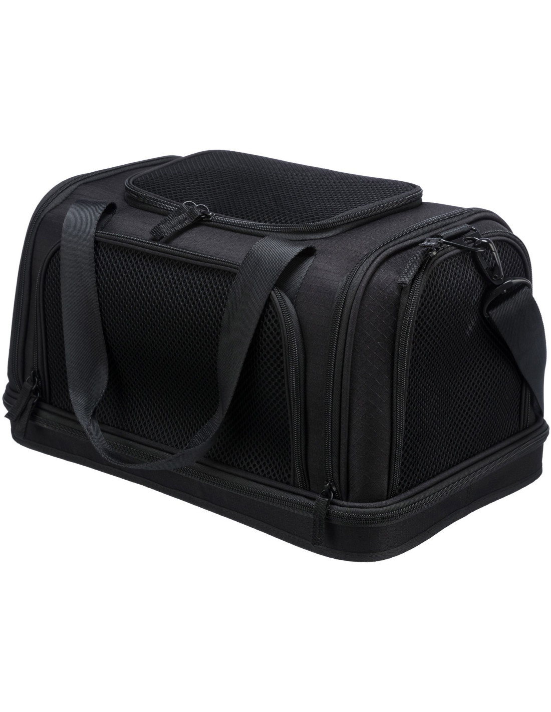Cuenta con dos asas de mano para transporte sencillo y una tira desmontable al hombro para mayor comodidad. En el interior incorpora una correa corta de seguridad para evitar que el animal salte fuera durante el trayecto.