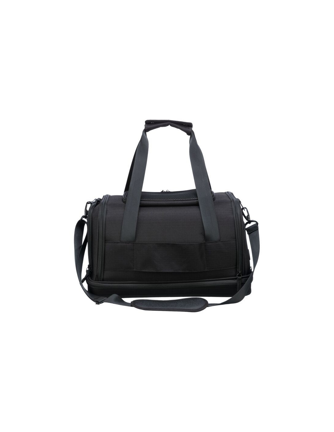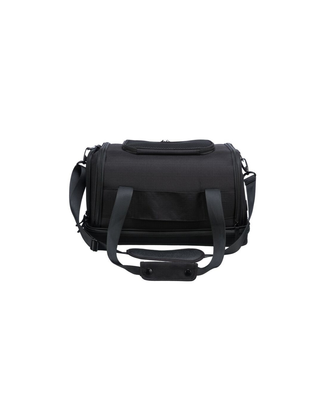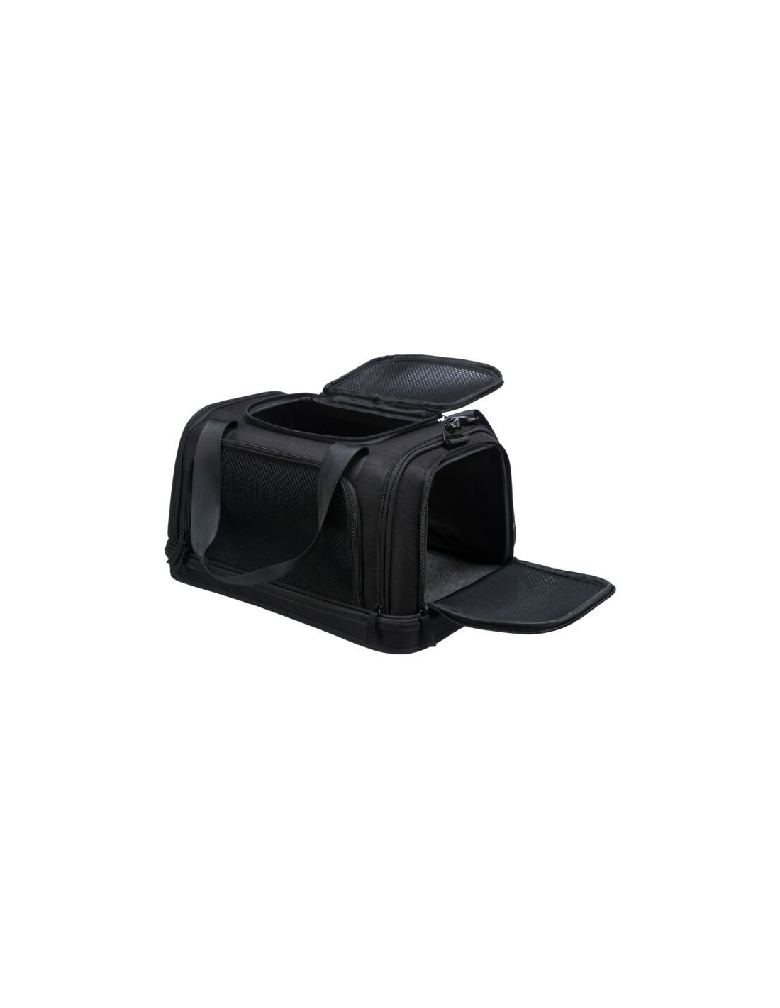 Cuenta con dos asas de mano para transporte sencillo y una tira desmontable al hombro para mayor comodidad. En el interior incorpora una correa corta de seguridad para evitar que el animal salte fuera durante el trayecto.
