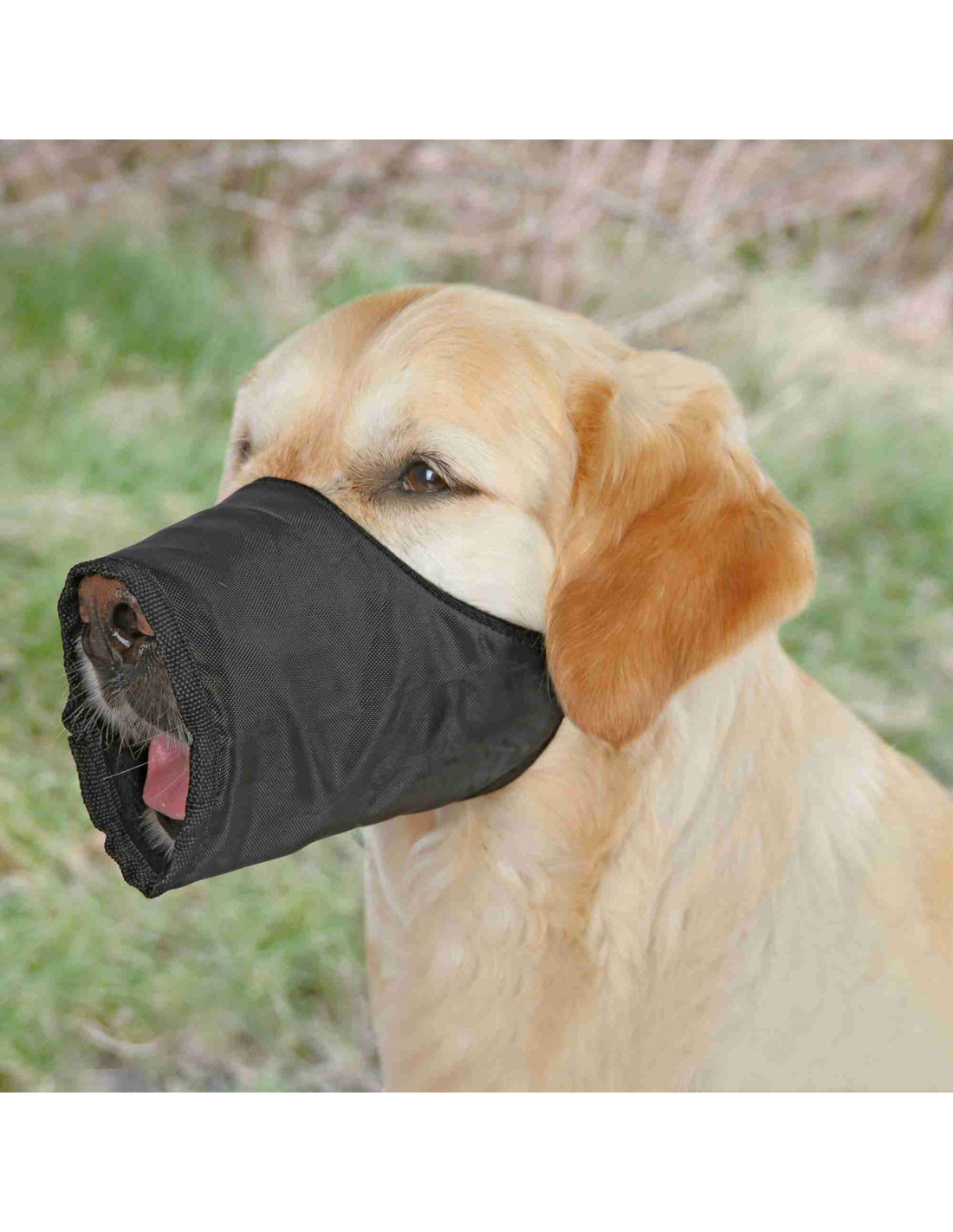 El Bozal para perros de poliéster, disponible en Mismascotas y fabricado por Trixie, es ideal para periodos cortos de uso, como visitas veterinarias o sesiones de entrenamiento. Sus tiras de cierre ajustables al cuello aseguran un ajuste cómodo y seguro, mientras que su color negro clásico lo hace versátil y duradero.