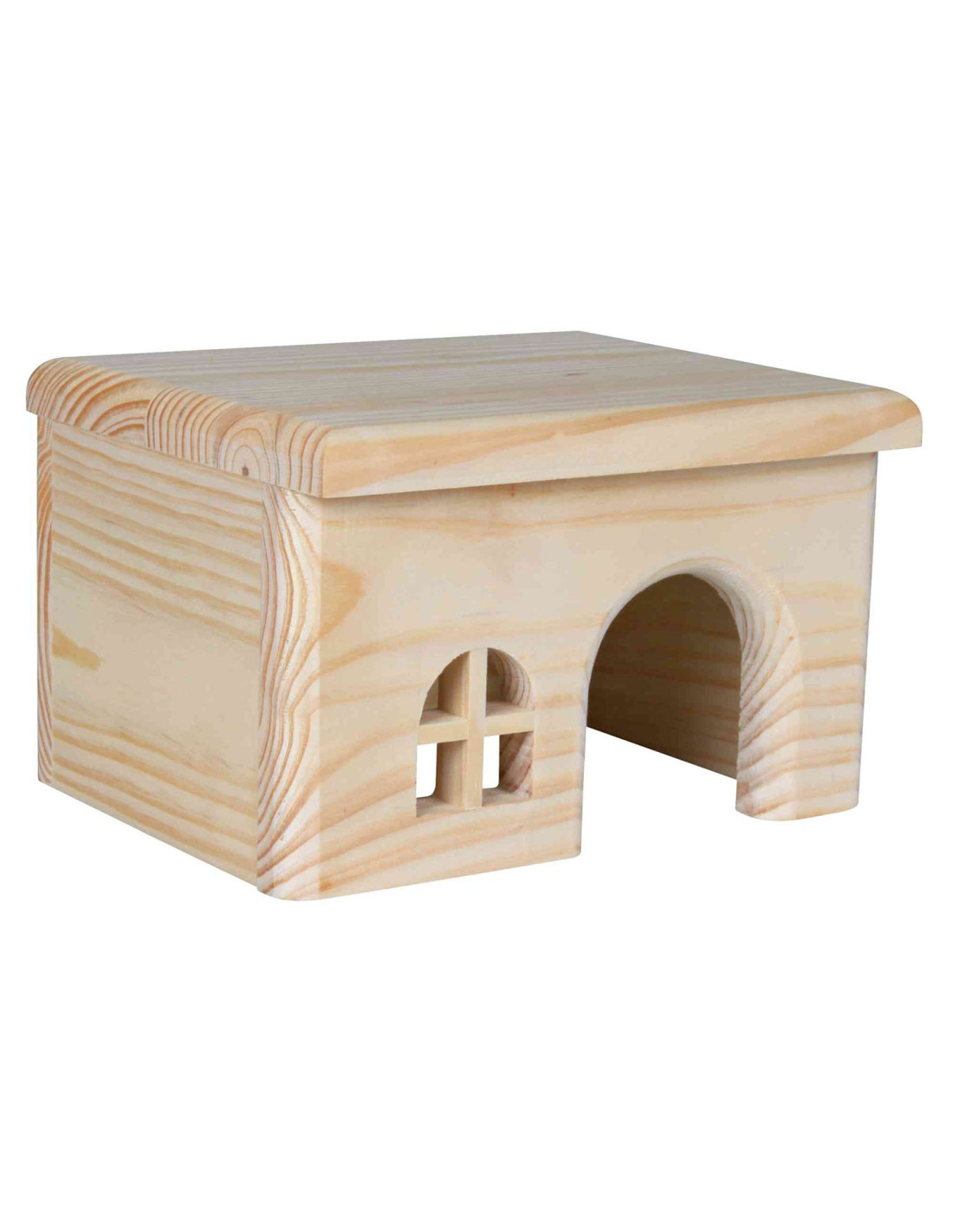Preciosa Casita para Hámsters, hecha de madera de pino de alta calidad, es el refugio perfecto para tu pequeña mascota, gracias a su puerta y su ventana.