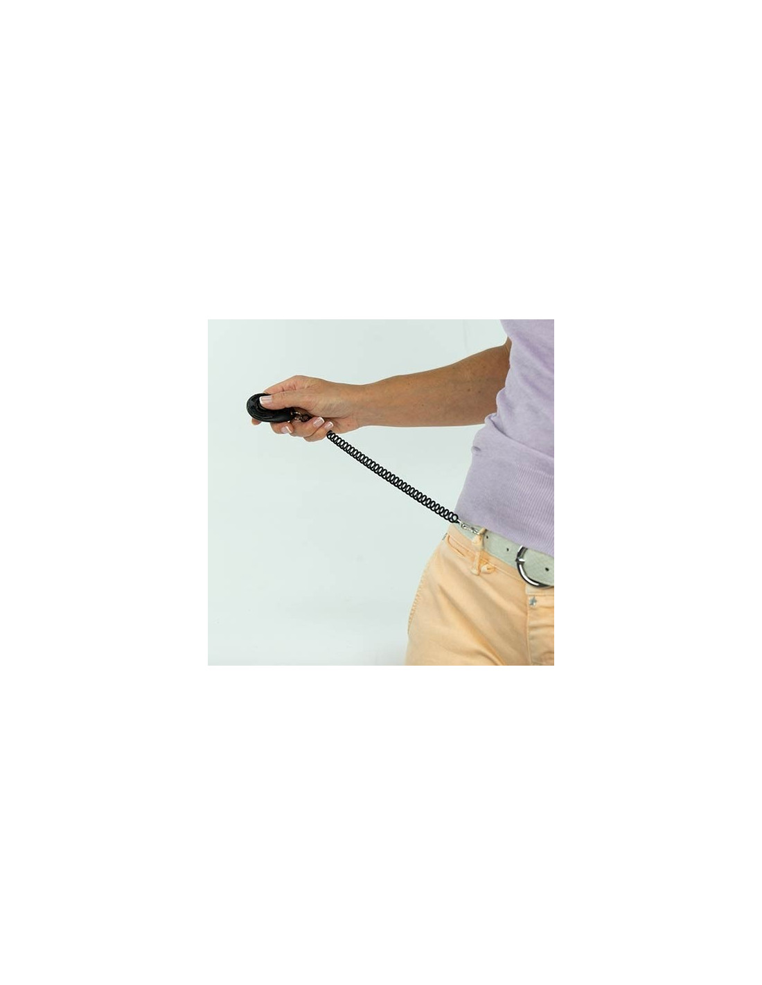 Con su diseño práctico, el clicker cuenta con una pulsera elástica equipada con un mosquetón, lo que permite engancharlo fácilmente en cualquier lugar, como en el cinturón, en una mochila o llevarlo cómodamente en la muñeca. Esto garantiza que siempre esté a mano cuando más lo necesitas durante las sesiones de entrenamiento.