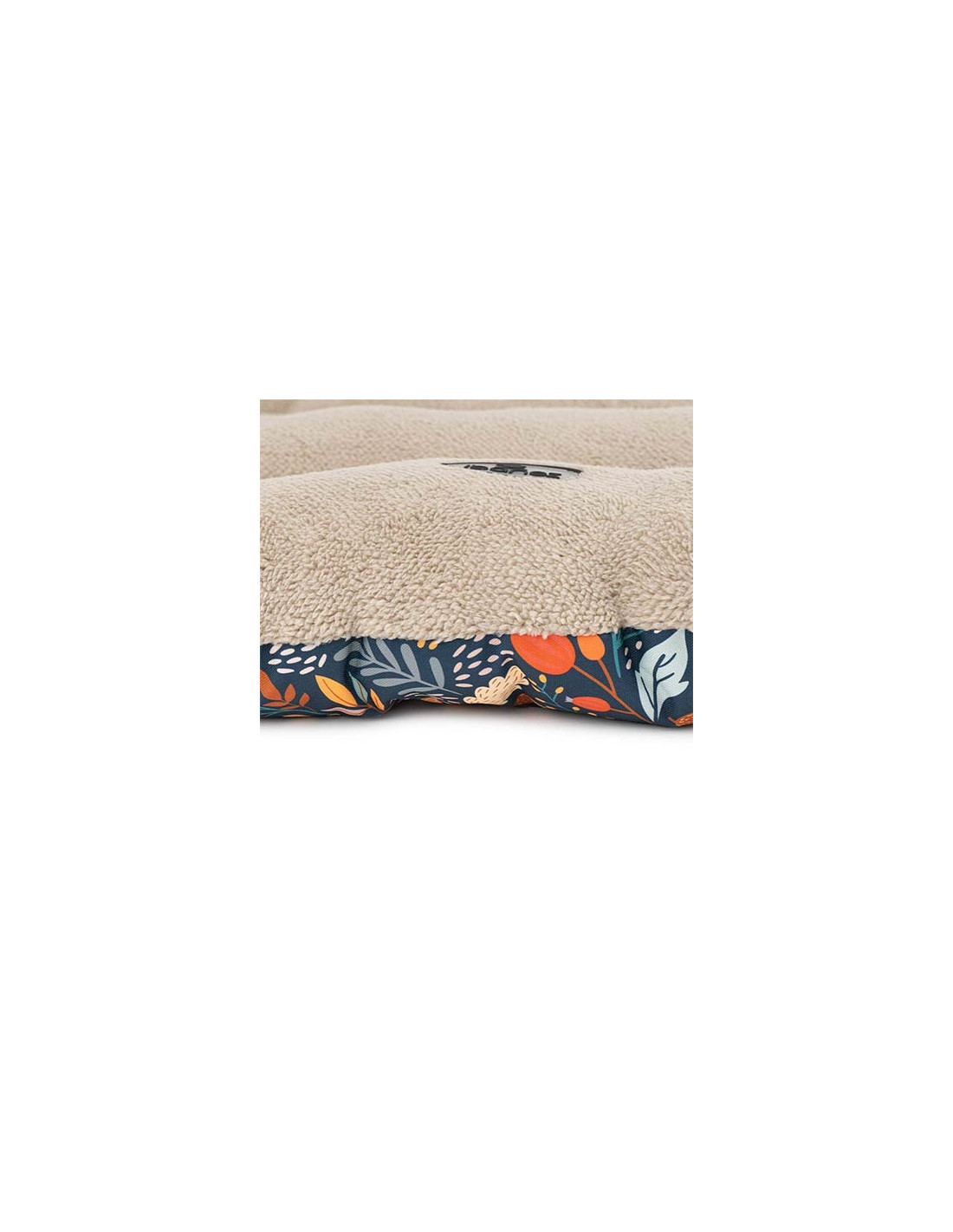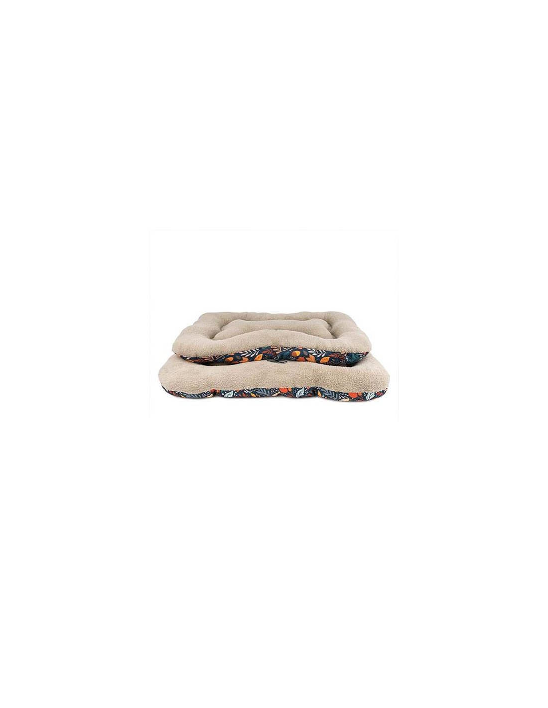 Dale a tu perro un lugar cómodo y estilizado para descansar con la colchoneta Leaf. Cuenta con un hermoso diseño de hojas en tonos naranjas y azules por un lado, y un cálido tejido de felpa marrón por el otro, con un detalle de hueso en relieve en el centro que añade un toque especial.