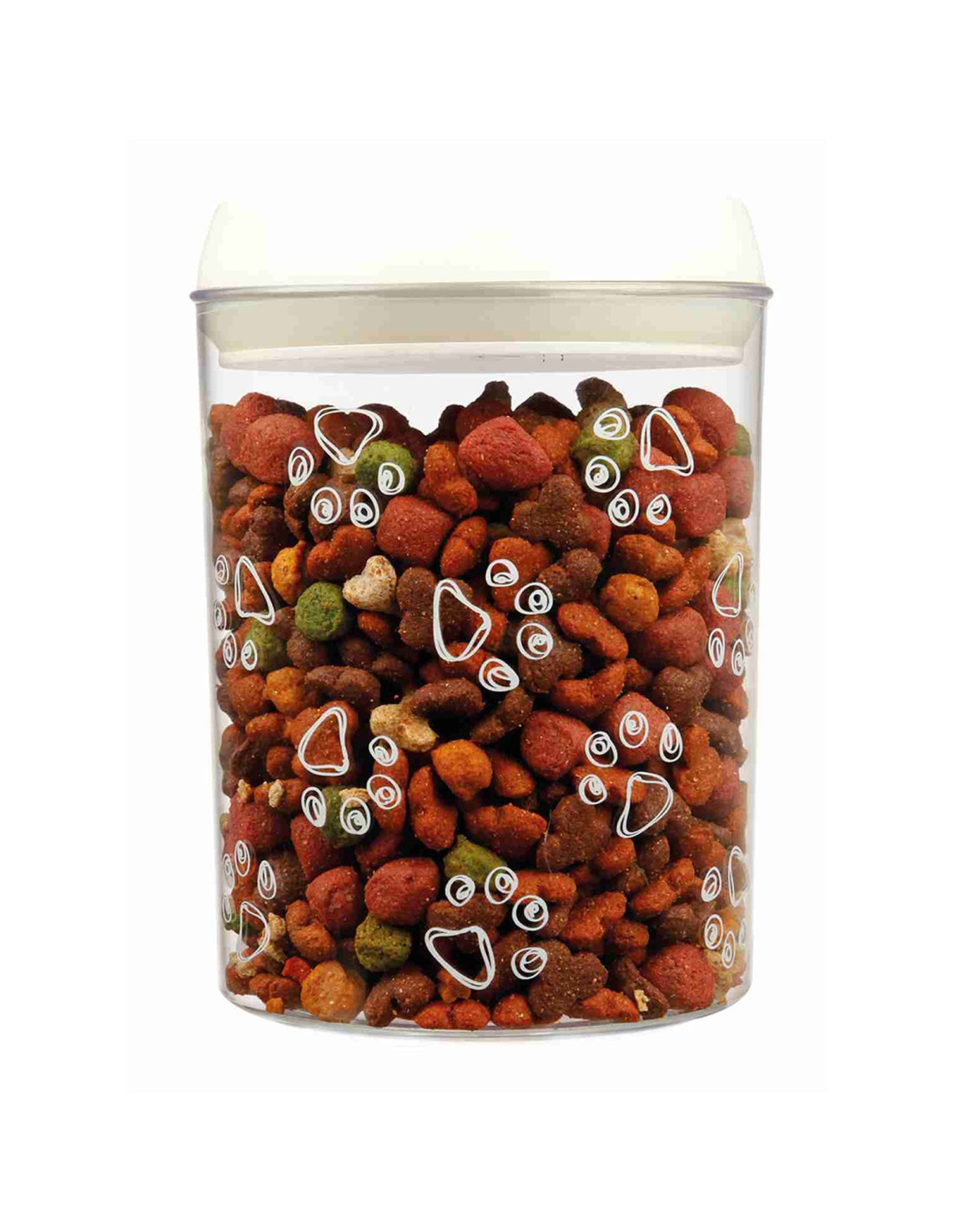 Con dimensiones adecuadas para el almacenamiento de una cantidad considerable de alimentos o snacks, este bote es una excelente opción para mantener organizada la alimentación de tus mascotas.