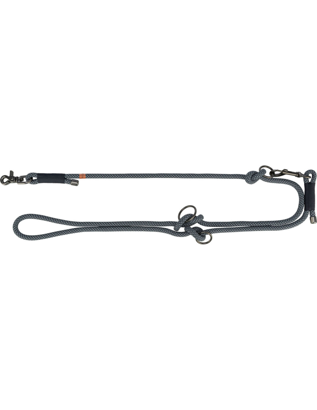 Correa ajustable con 3 posiciones, fabricada en cuerda mate de tejido redondo. Incluye mosquetones de gatillo, ideal para paseos cómodos y seguros.