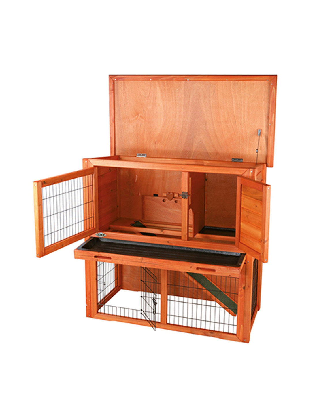 Fácil limpieza: La bandeja de plástico extraíble facilita la limpieza rápida y sencilla de la conejera.