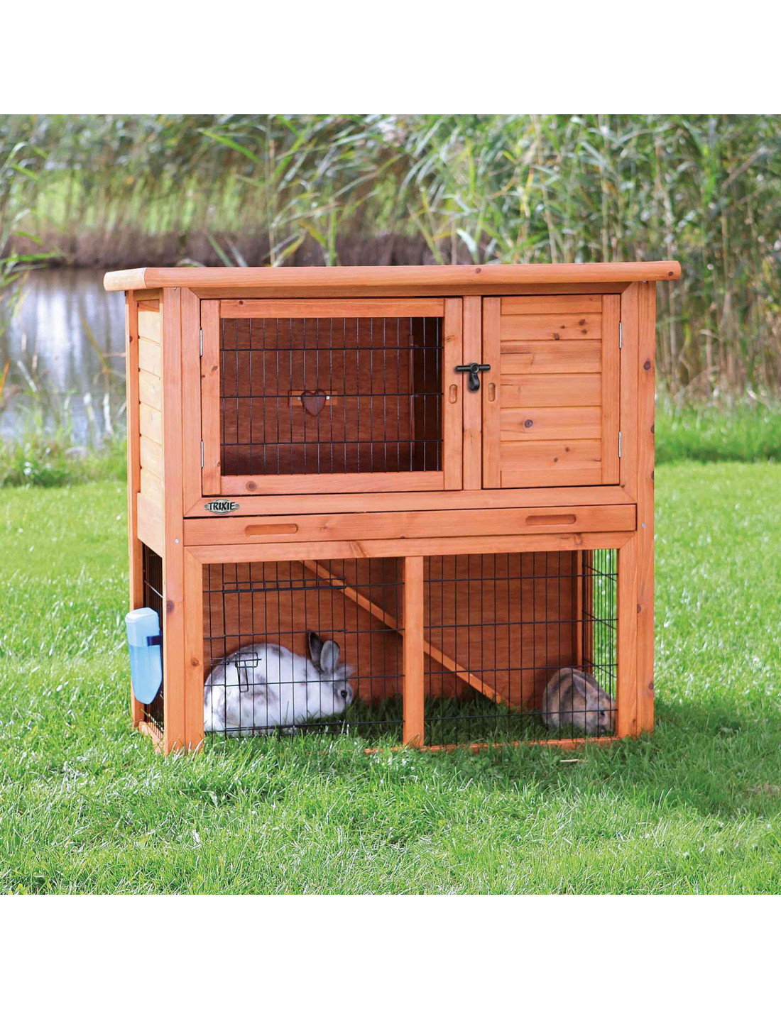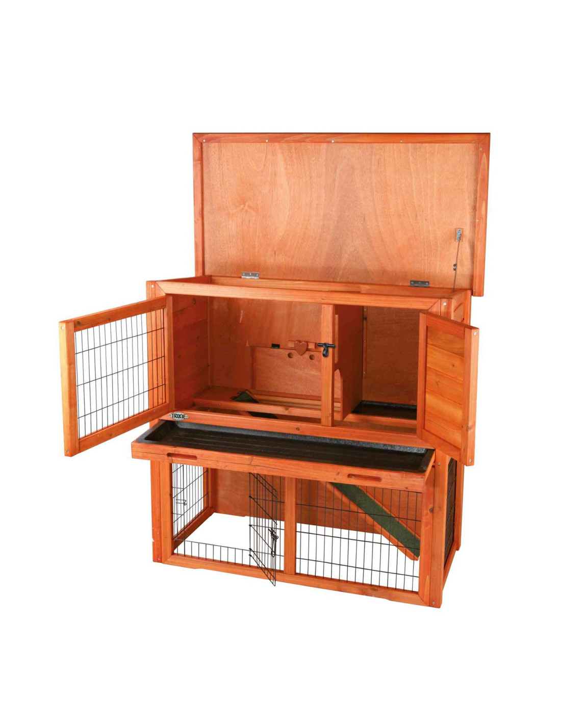 Versatilidad: La trampilla con cierre de plástico extensible permite conectar la conejera con recintos exteriores adicionales de la línea Natura de Trixie, ampliando el espacio disponible para tus conejos.