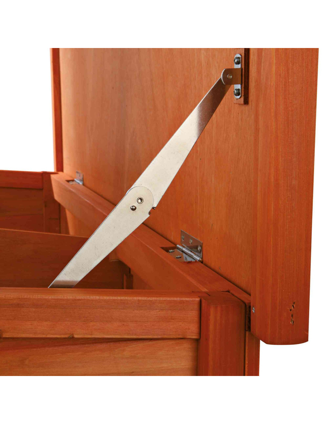 Acceso y ventilación: El techo puede abrirse desde arriba y el panel trasero de madera protege del viento, proporcionando una buena circulación de aire.