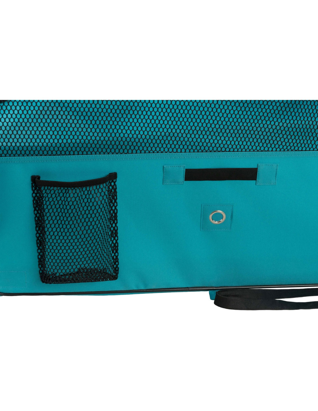 Funcionalidad añadida: Cuenta con base extraíble, apertura adicional para bebedero de botella, dos bolsillos laterales y se puede enganchar con lazos en la base.