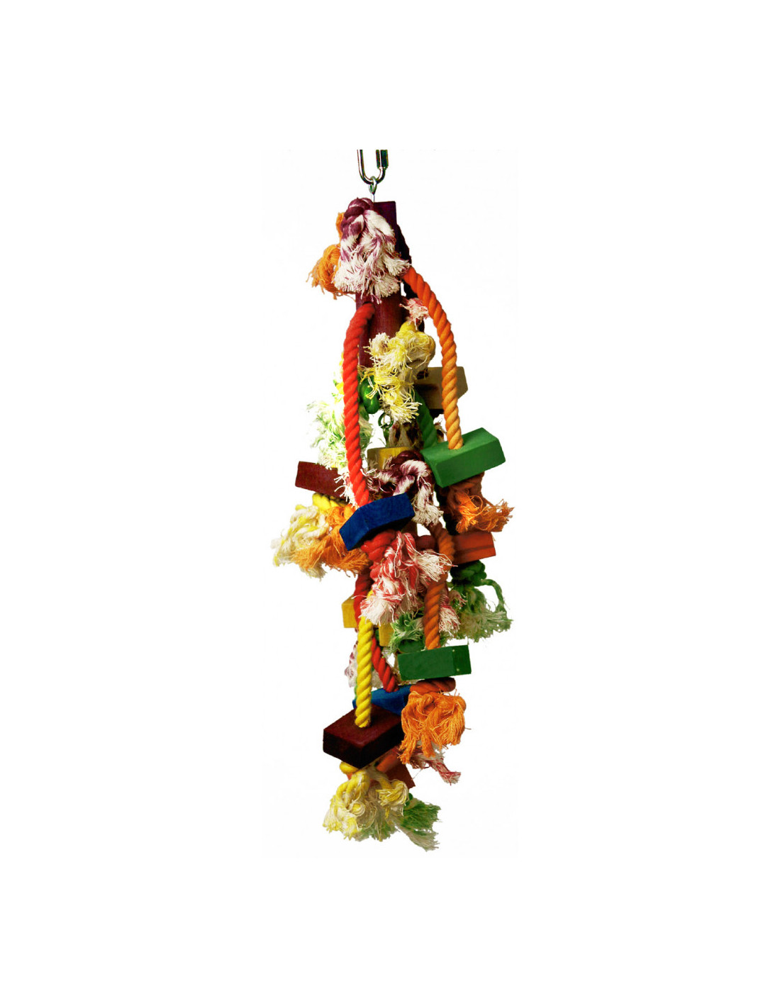 Fabricado con materiales naturales, ayuda a reducir el estrés y fomenta el comportamiento activo en todo tipo de loros.
