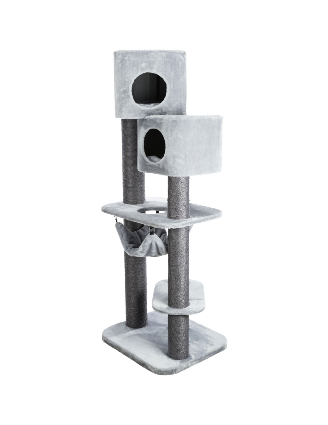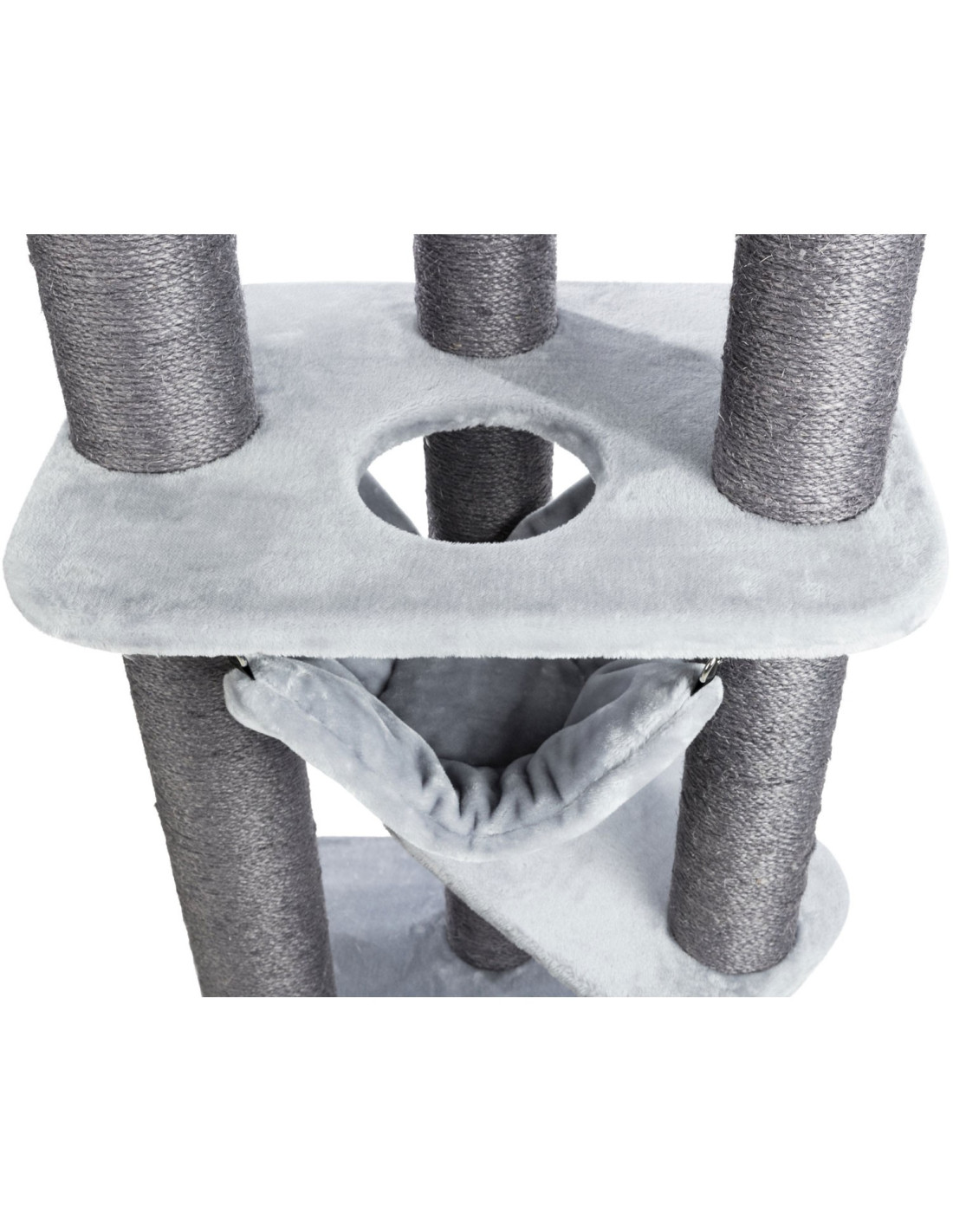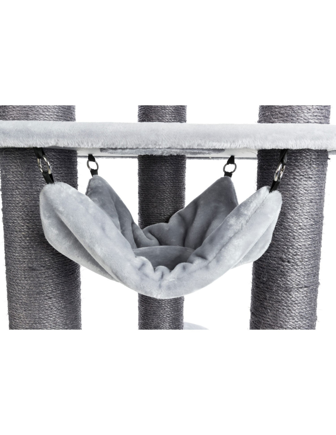 La hamaca extraíble, acolchada y lavable a mano, proporciona a tu gato un lugar cómodo para descansar y jugar, añadiendo variedad a su experiencia de juego y descanso. El color gris del poste rascador se integra fácilmente en cualquier decoración del hogar, añadiendo un toque de estilo mientras proporciona una función práctica para tu gato.