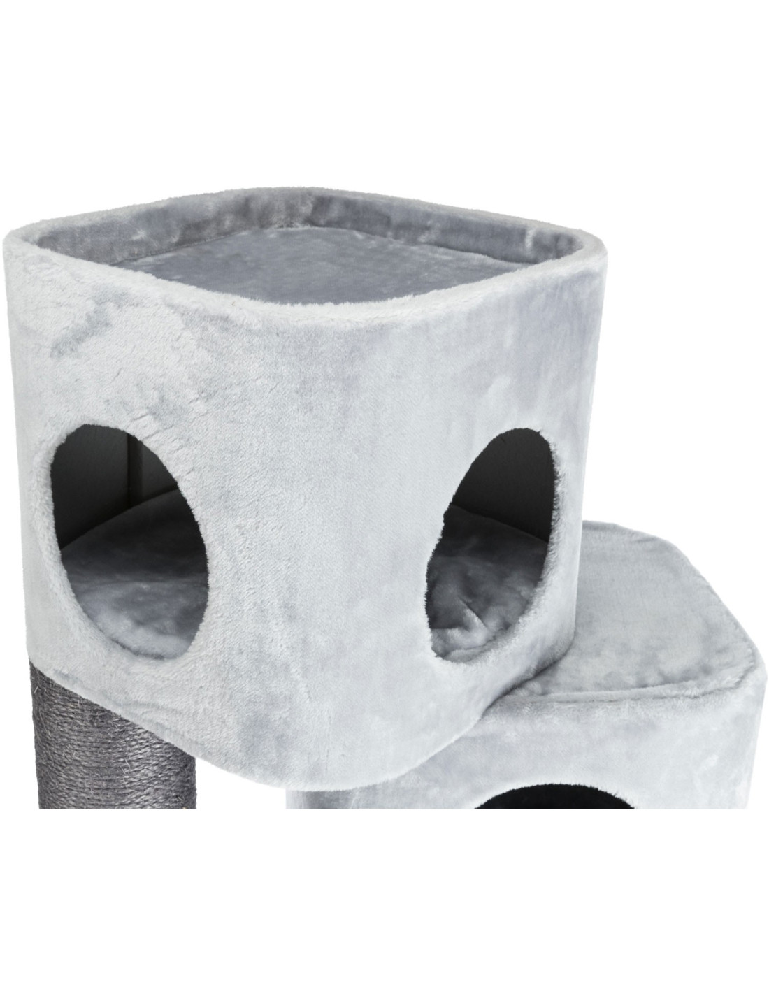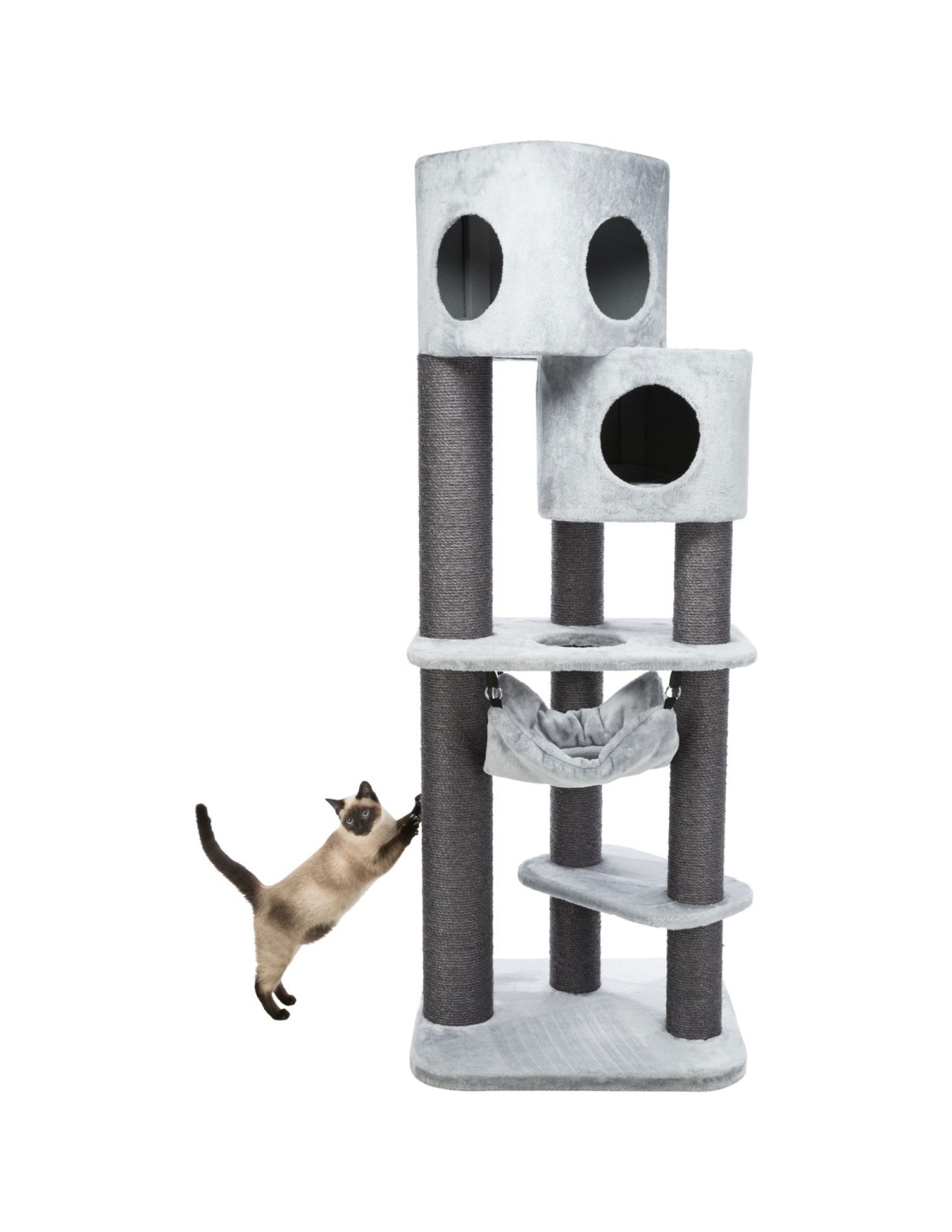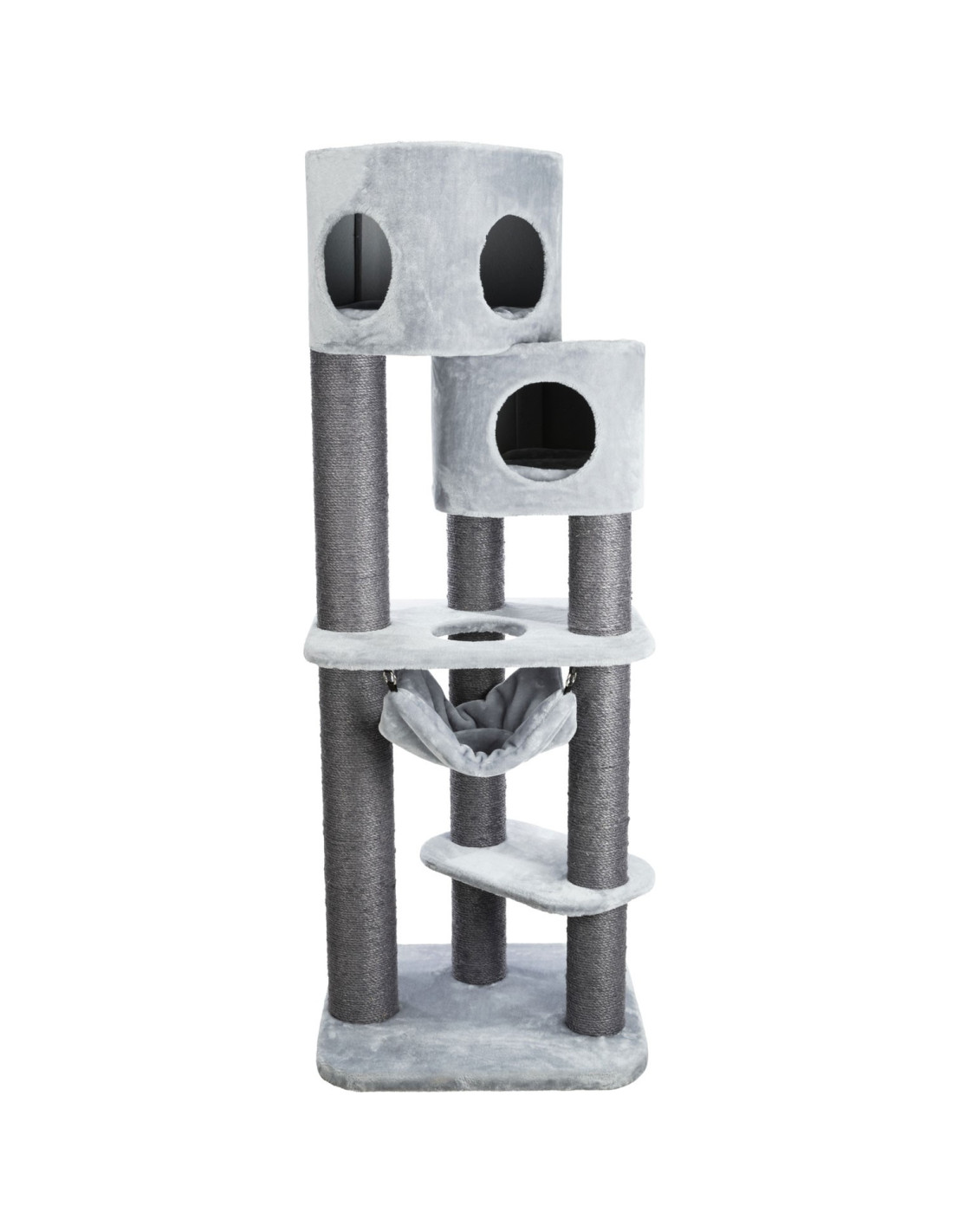 La hamaca extraíble, acolchada y lavable a mano, proporciona a tu gato un lugar cómodo para descansar y jugar, añadiendo variedad a su experiencia de juego y descanso. El color gris del poste rascador se integra fácilmente en cualquier decoración del hogar, añadiendo un toque de estilo mientras proporciona una función práctica para tu gato.