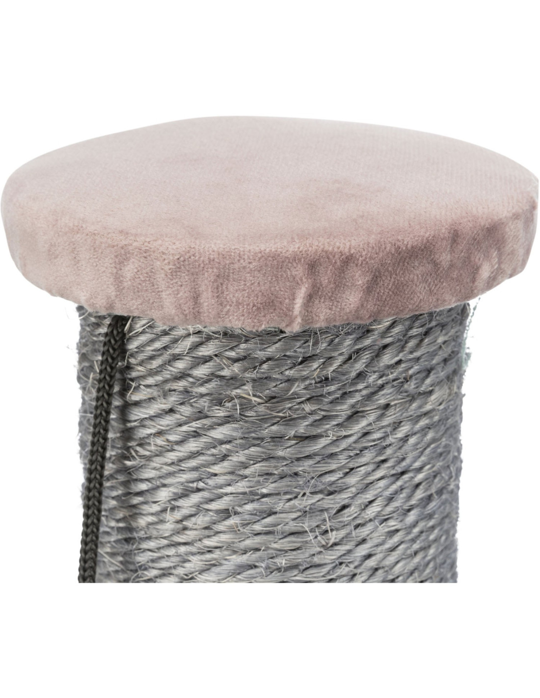 - Diseño atractivo: La combinación de colores gris y rosa, junto con la imitación de terciopelo, le da a este poste rascador un aspecto elegante y moderno que se integra perfectamente en cualquier ambiente.