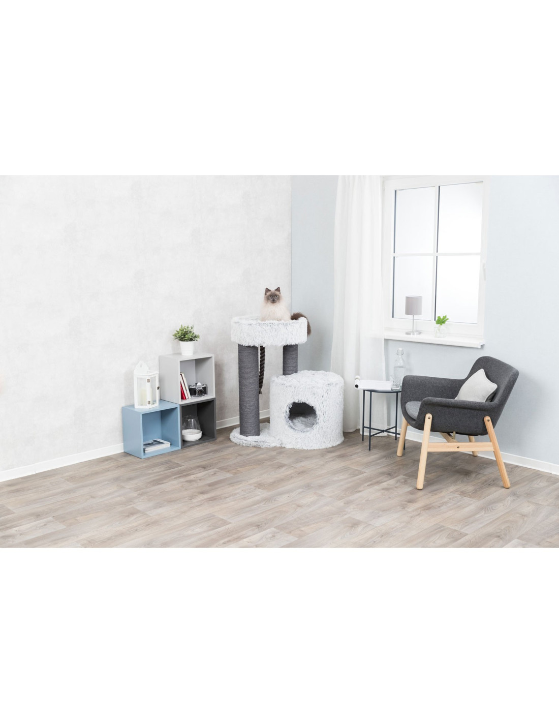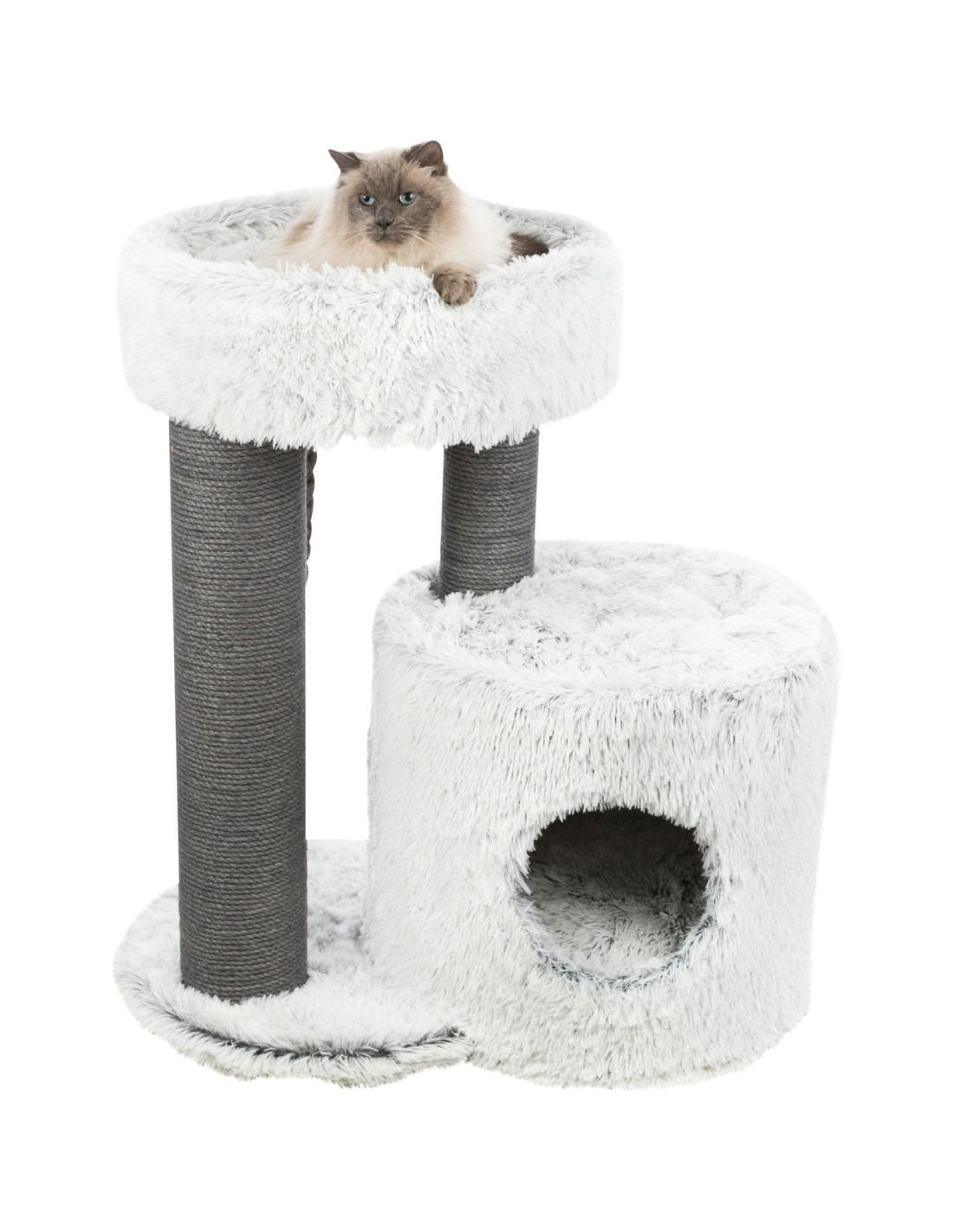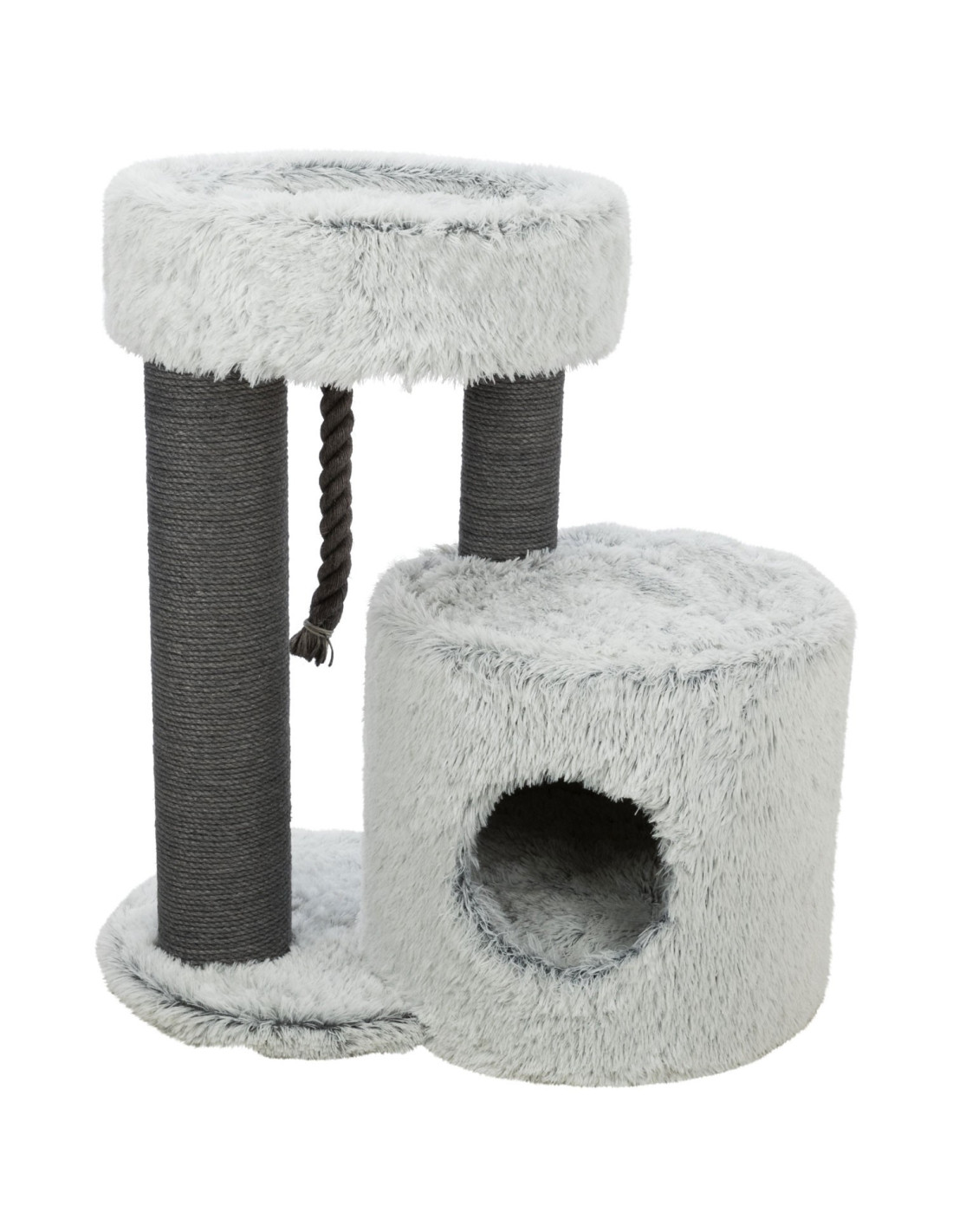 Está fabricado con yute de alta calidad con un diámetro de 6 mm, proporcionando una superficie robusta y duradera para que los gatos afilen sus garras. Además, está cubierto con felpa de poliéster con un peso de 310 g/m², lo que lo hace suave y cómodo al tacto.