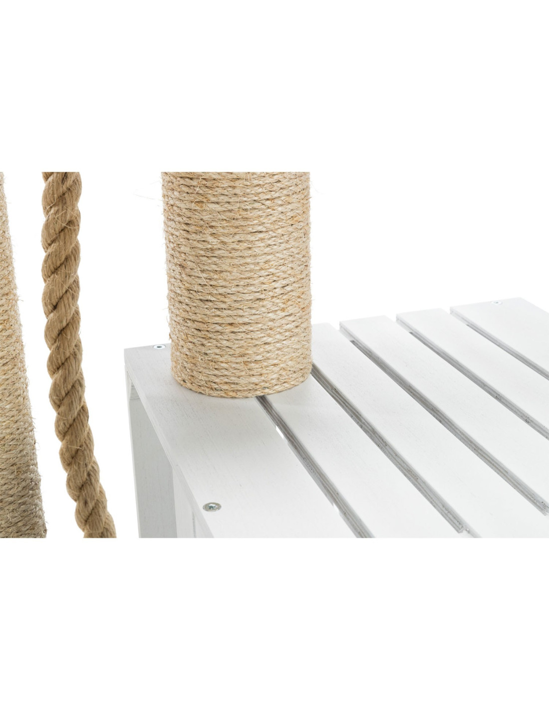 El color blanco del poste rascador se integra fácilmente en cualquier decoración de hogar, añadiendo un toque de elegancia y sofisticación a tu espacio. Además, cuenta con una cómoda cama suave en la parte superior, donde tu gato puede descansar y relajarse cómodamente después de jugar.