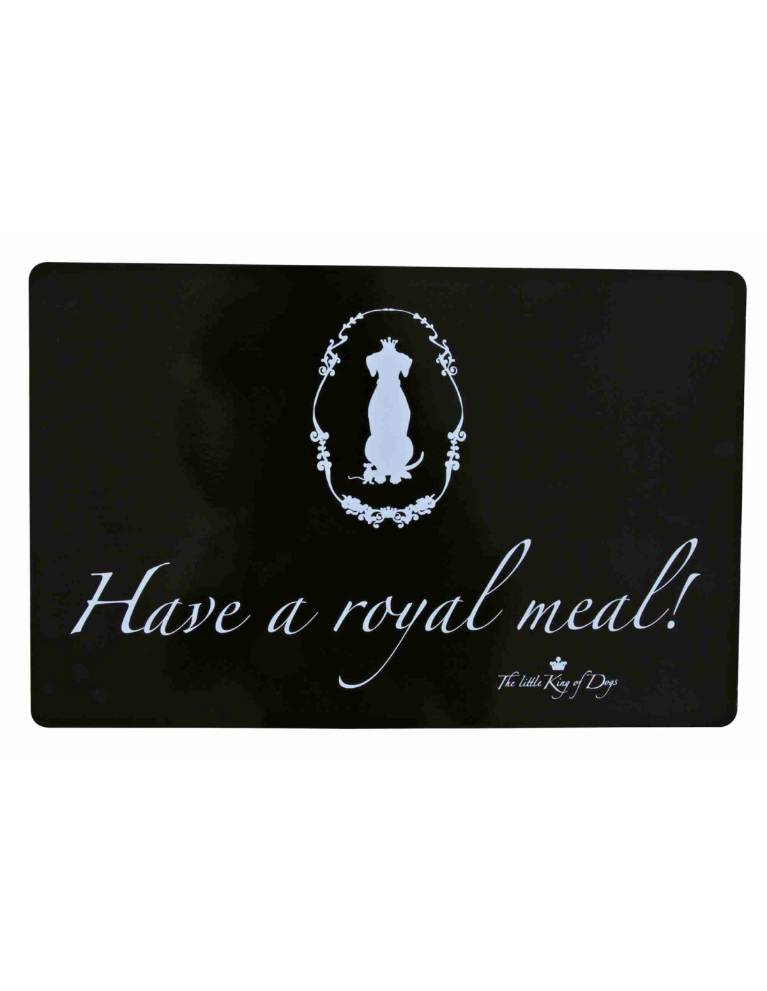 El salvamanteles King Dogs de 44 × 28 cm es perfecto para mantener la zona de alimentación de tu mascota limpia y ordenada. Con su diseño elegante en negro y blanco, aporta un toque de estilo mientras protege la superficie de tu mesa o suelo de derrames y manchas de comida y agua.