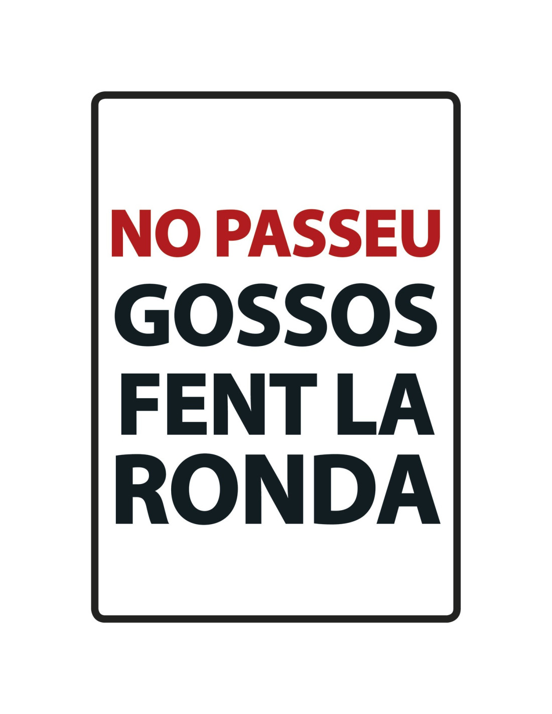 Señal A5 Metálica 'No Passeu Gossos fent la Ronda'