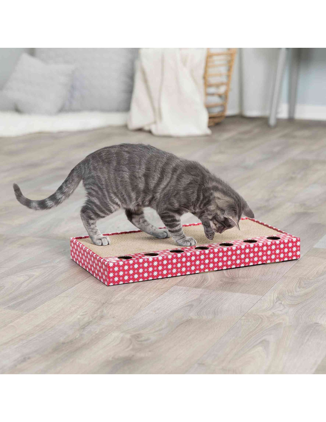 Diseño Funcional: Con una forma rectangular y un tamaño adecuado, este rascador ofrece un espacio amplio para que tus gatos puedan estirarse, rascar y jugar cómodamente.