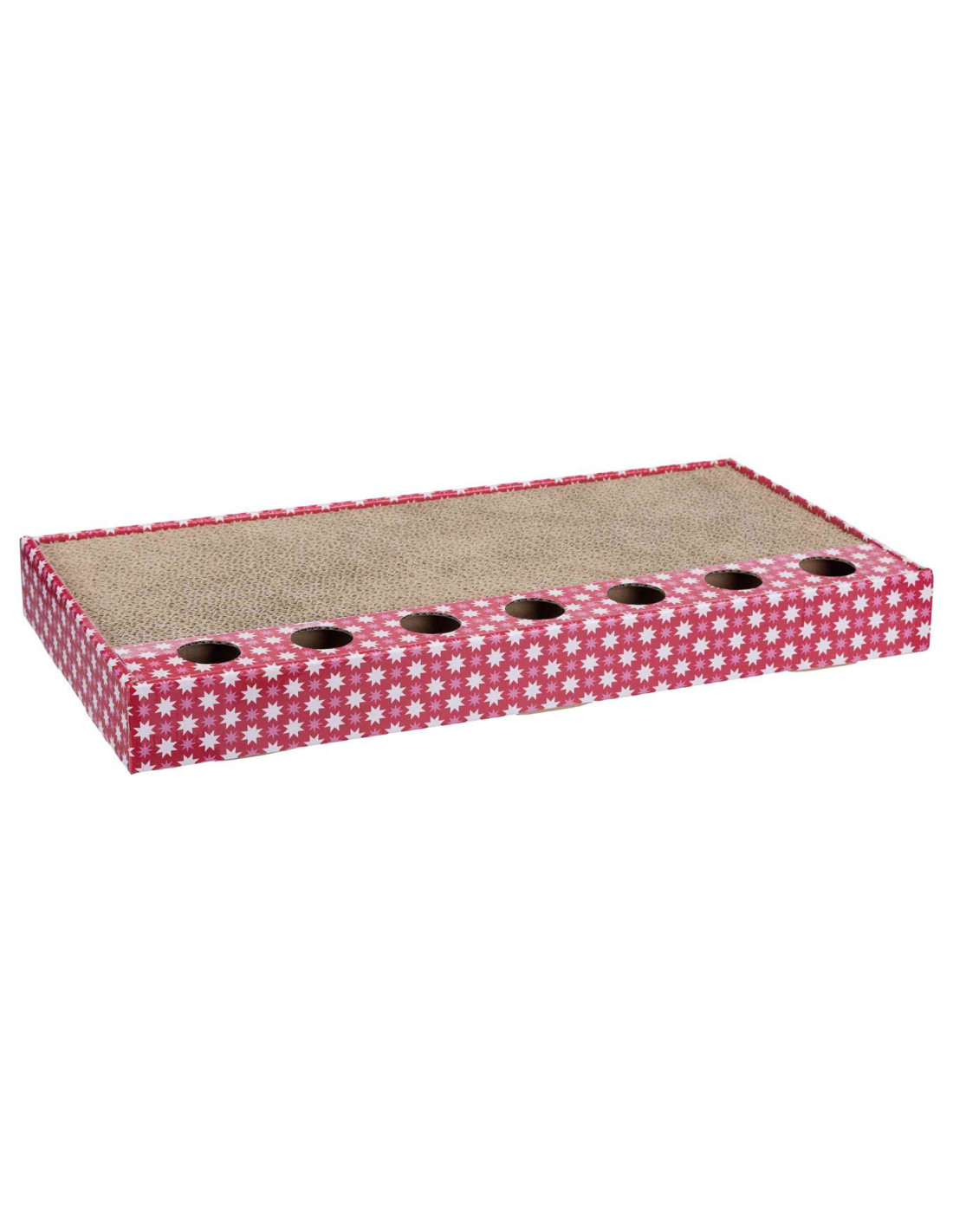 El cartón rascador con juguetes en color rosa es una opción divertida y funcional que satisfará las necesidades naturales de tus gatos mientras les proporciona un lugar para jugar y entretenerse.