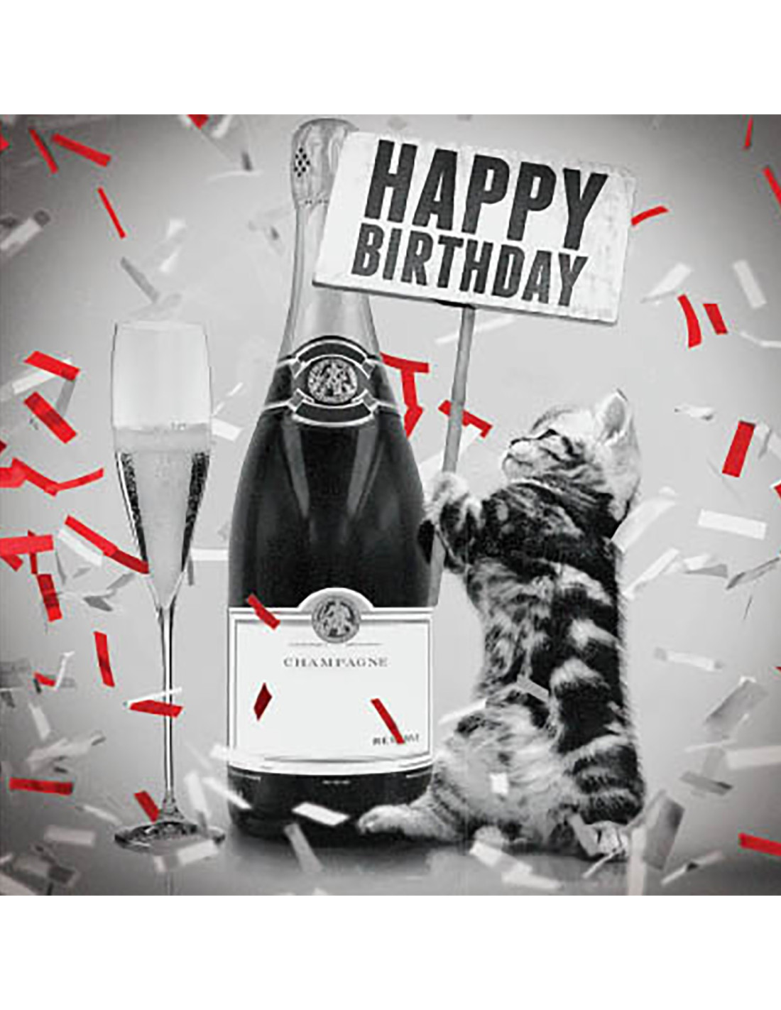 Tarjeta Gatito con Champán, 15 x 15 cm, MAGNET & STEEL