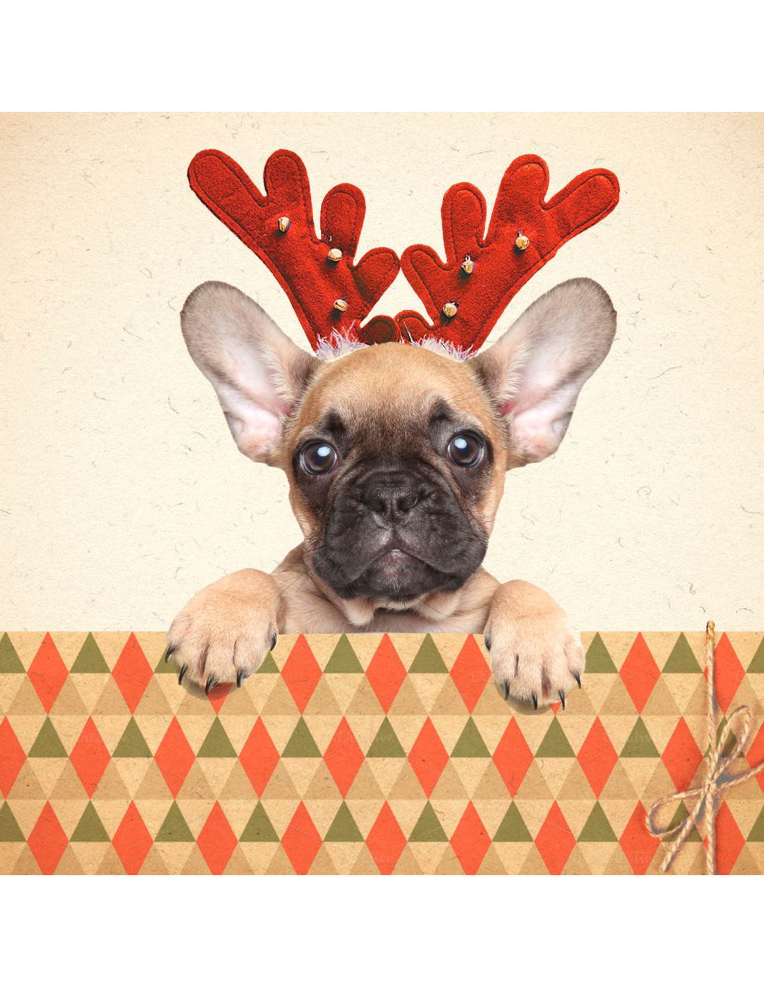 Tarjeta Frenchie con Astas de Reno, 15 x 15 cm, MAGNET & STEEL
