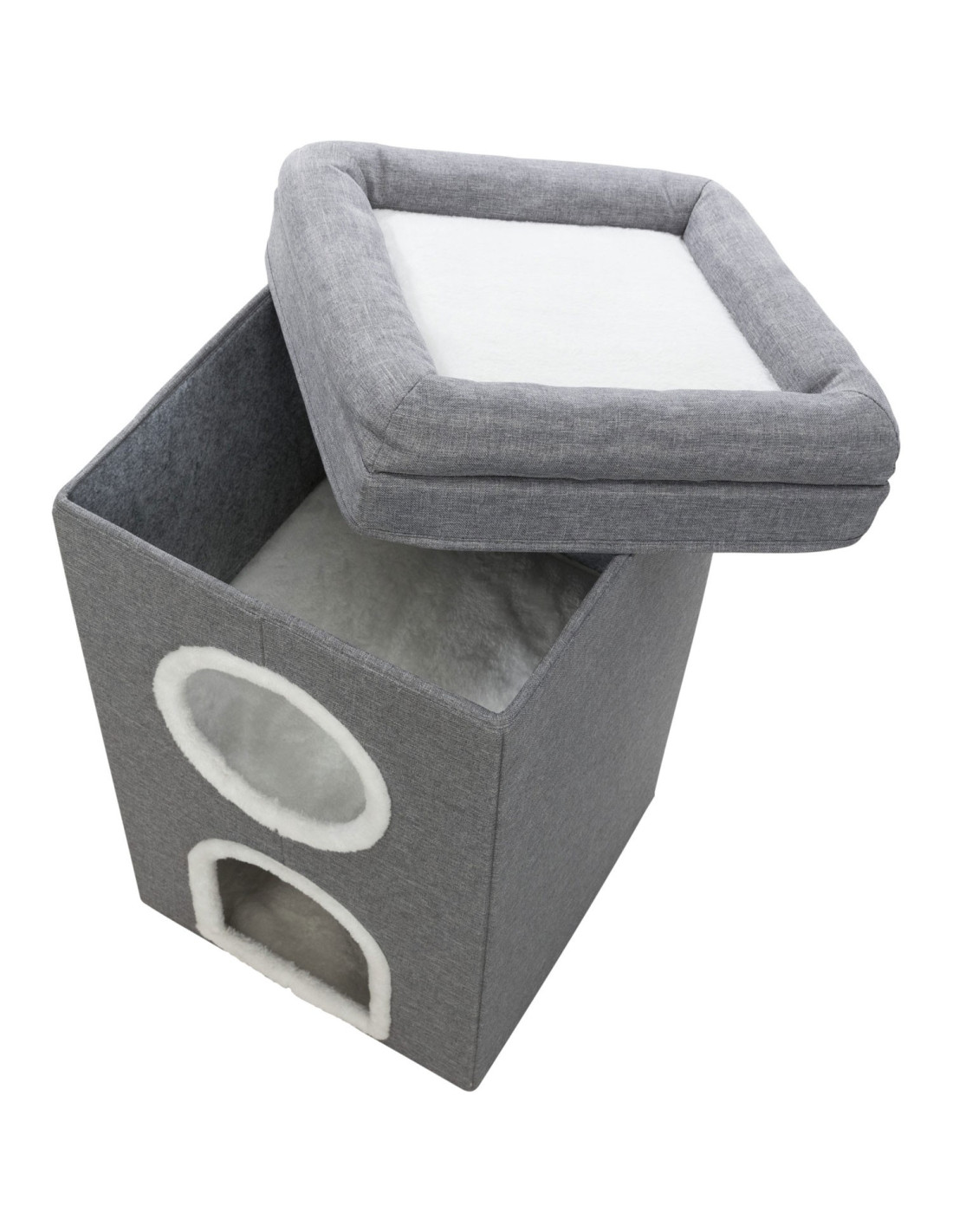 En resumen, la Torre Rascador Saul de 64 cm en gris es una excelente opción para quienes tienen un espacio limitado pero aún desean proporcionar a sus gatos un mueble donde puedan disfrutar y sentirse cómodos.
