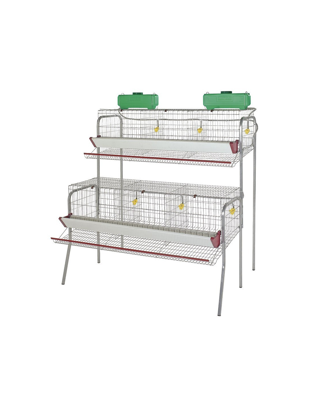 La batería de jaulas tipo California está diseñada para ofrecer un entorno ideal para las gallinas ponedoras en plazas colectivas de 4 gallinas por sección. Fabricada en malla galvanizada de primera calidad y con un sistema de comederos y bebederos eficientes, esta jaula garantiza un manejo cómodo y fácil mantenimiento.