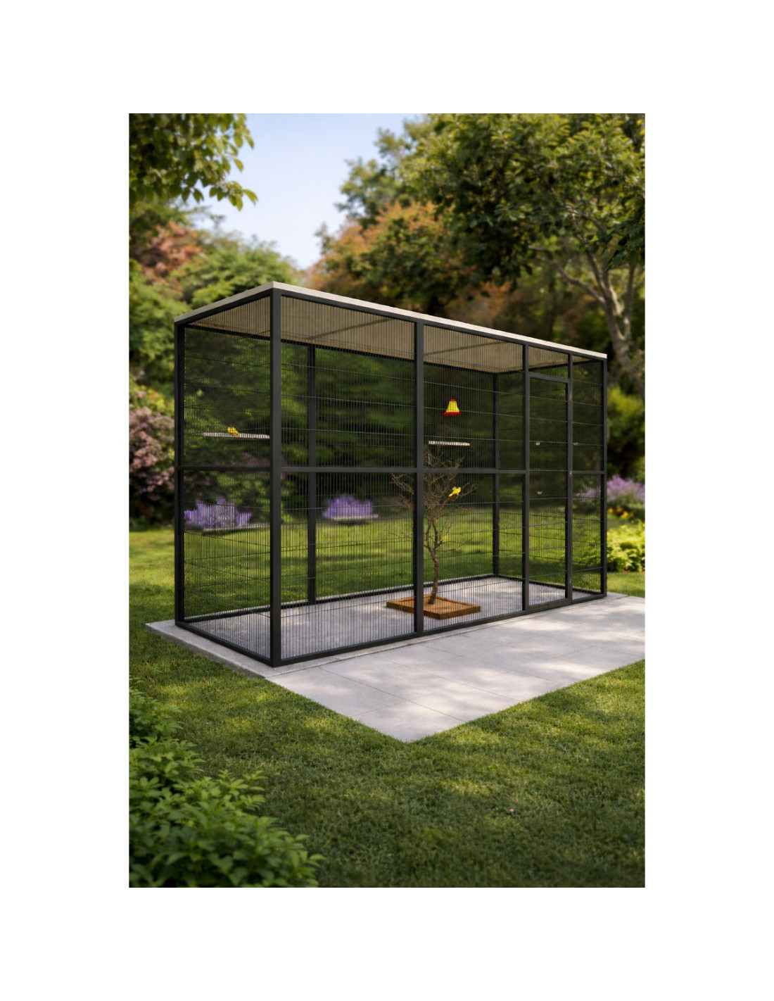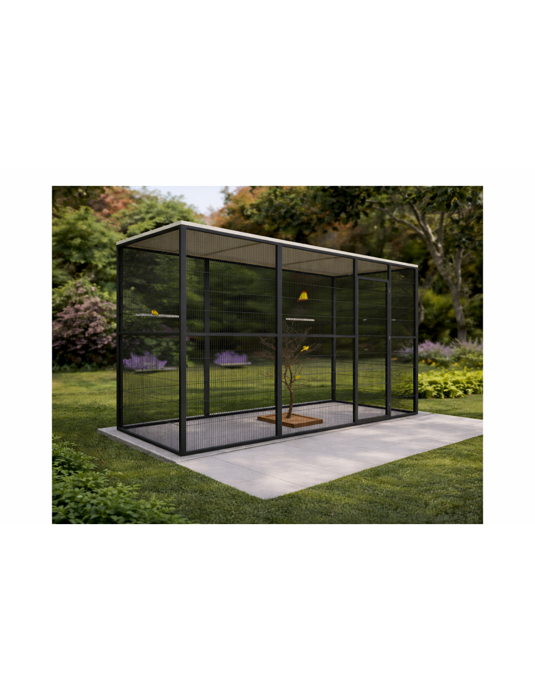 Su estructura modular permite ampliaciones futuras con paneles adicionales, lo que la convierte en una opción ideal para adaptarse al crecimiento o necesidades específicas del aviario.